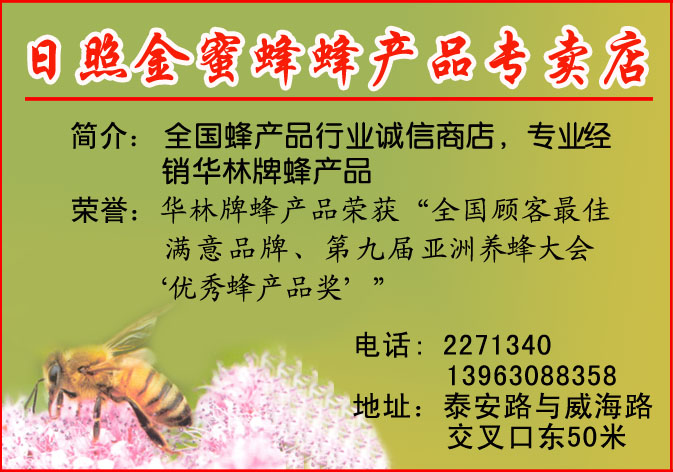 日照金蜜蜂蜂产品专卖店,全国蜂产品行业诚信商店,专业经销华林牌蜂产品。
