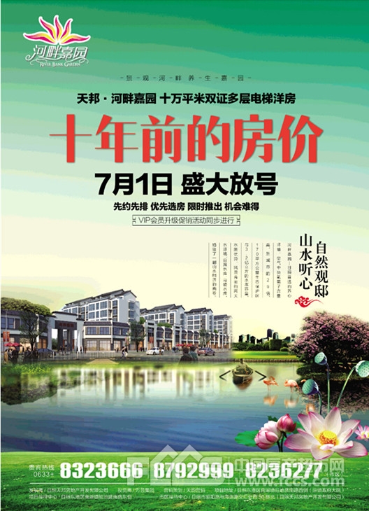 日照黄页网房产频道讯:景观河畔,养生嘉园,天邦·河畔嘉园,十万平米双证多层电梯洋房,7月1日盛大放号,先约先排,优先选房,限时推出,机会难得。VIP会员升级促销活动同步进行。