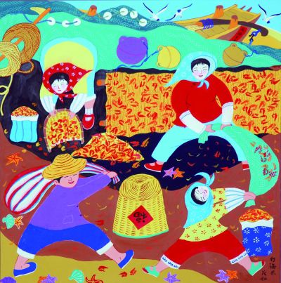 (图注:打海米(农民画)徐茂松日照市美术馆藏)