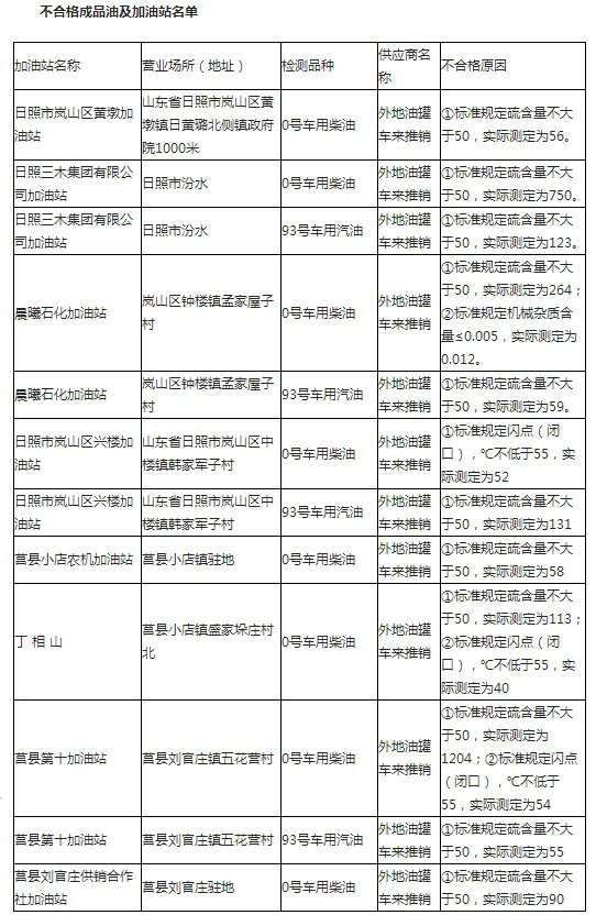 9月22日,日照市工商局公布该市流通领域成品油质量监测结果,共抽取成品油样品58批次,11批次样品不合格。