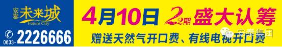 安泰·未来城(动态 图库 户型)4.10日认筹 当日可参加大抽奖活动!赠送天然气开口费、有线电视开口费!安泰老业主购房可再享98折优惠!