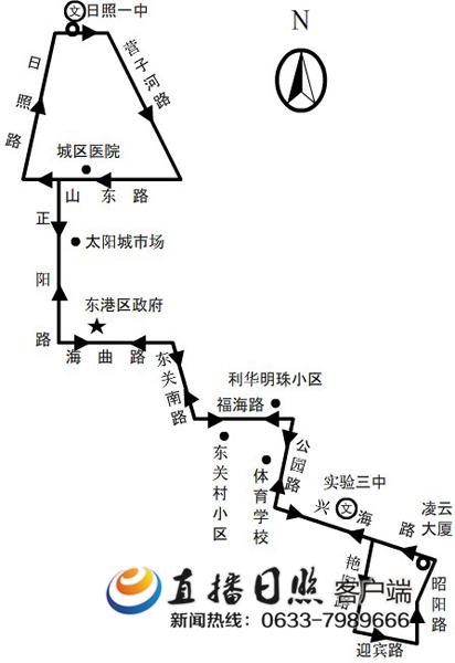 据了解,将于8月6日开通的48路公交线路起始站为日照一中、终点站为凌云大厦,其中上行路线为:日照一中-营子河路至实验中学-山东路正阳路-太阳城市场-海曲路-东港区政府-东关南路-东关村小区-福海路-利华明珠小区-公园路-市体校-兴海路-实验三小-艳阳路-雅禾大酒店-迎宾路、昭阳路-东港区公路局-兴海路-凌云大厦。下行路线为:凌云大厦-兴海路-实验三小-公园路-市体校-福海路-东关村小区-东关南路海曲路-东港区政府-正阳路-太阳城市场-山东路日照路-天德南区-营子河路-日照一中。