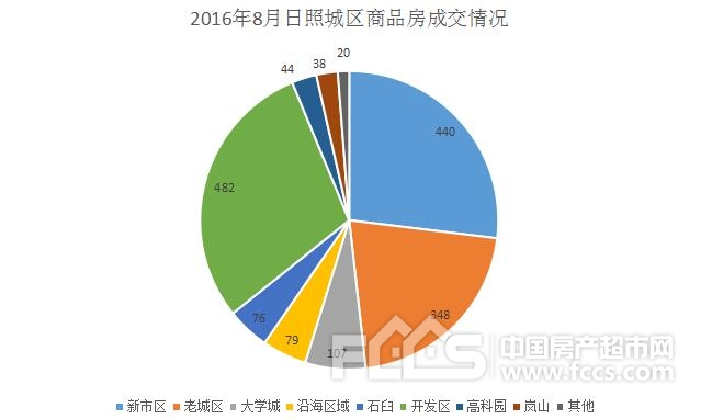 分区域看,8月份成交量较高的三个区域为开发区、新市区及老城区,分别成交商品房482套、440套及348套,除该三大区域外,仅有大学城成交107套,在百套以上。其他区域成交量均不足百套,详细成交情况分别为:沿海区域79套、石臼区域76套、高科园44套、岚山38套。