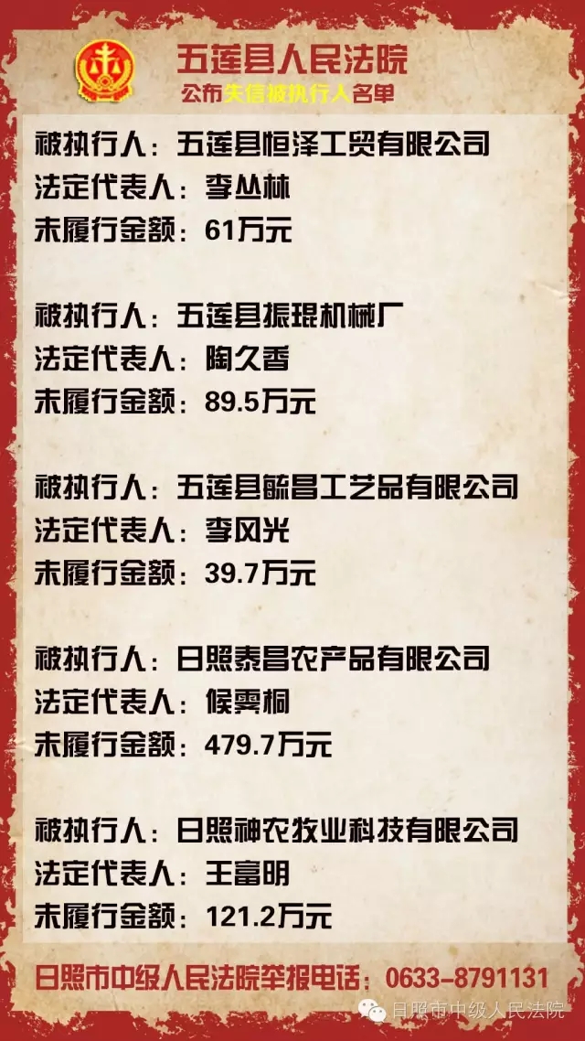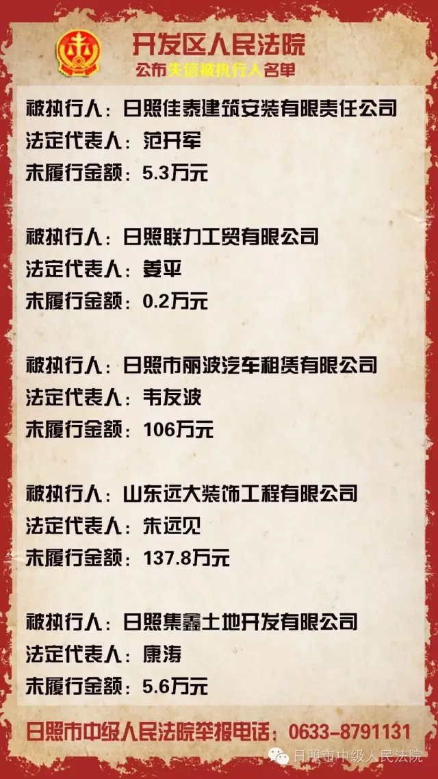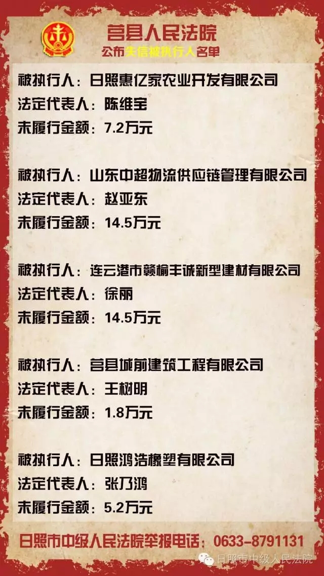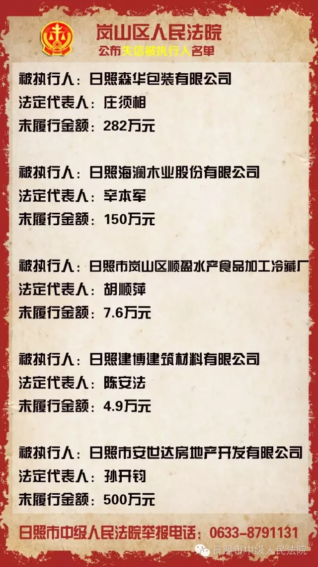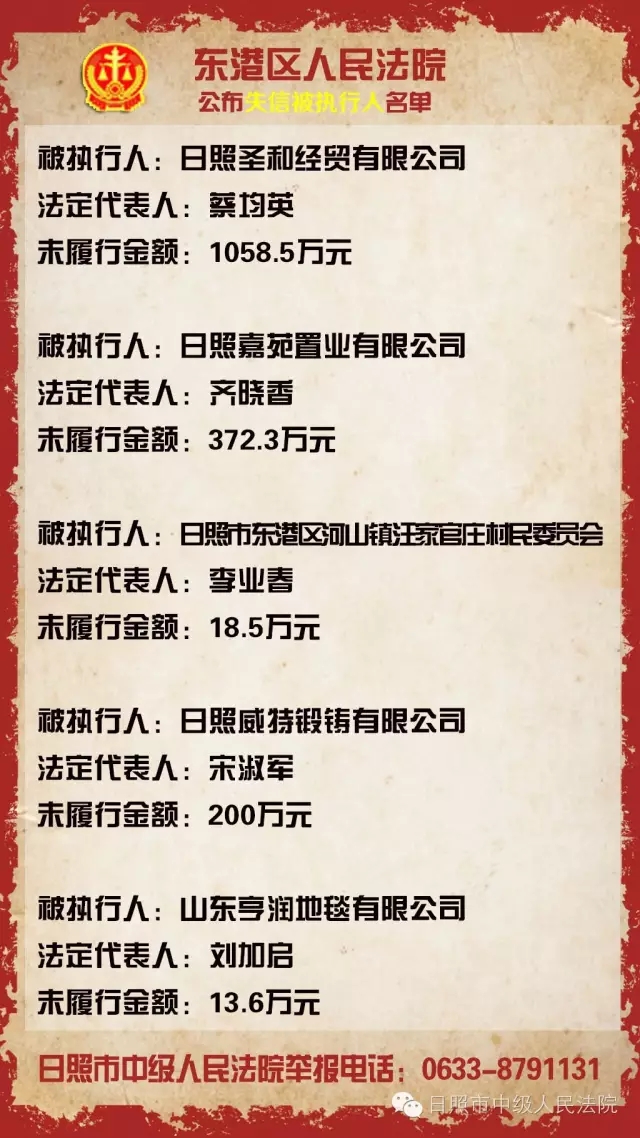 日照公布第十五批“老赖” 最高涉额一千余万