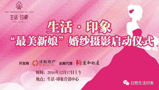 12月17日,生活·印象首届“最美新娘”婚纱摄影启动仪式将在售楼处盛大开启,为您拉开“最美新娘”评选的帷幕,精彩的婚纱走秀倾情绽放,现场有机会获得化妆、现场拍摄写真的机会,众多奖品让您拿到手软。