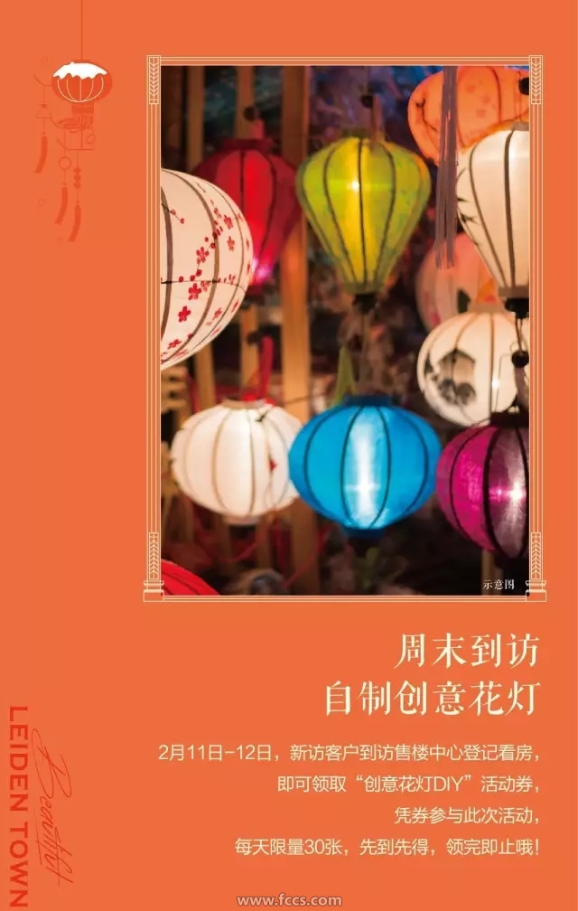 2月11日—12日,新访客户到访招商·莱顿小镇看房,即可参与创意花灯DIY活动。