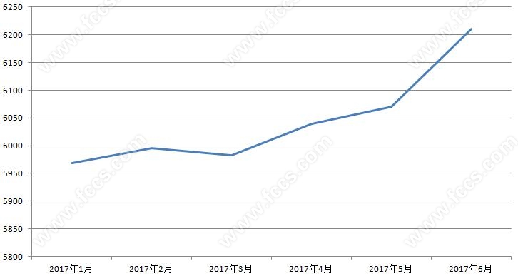 据日照房价30指数统计显示,2017年上半年分别为5968元/平、5996元/平、5983元/平、6040元/平、6070元/平、6210元/平,最低出现在1月,最高出现在6月,差值242元,中间除3月份有微降之外,其他月份均有不同程度的上涨,房价整体上扬成为日照楼市短期内的大方向。