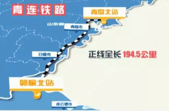 青日连铁路线路北起青岛北站,南至赣榆北站,今年年底将与济青高铁同步建成通车,我市即将进入“高铁时代”。届时,咱日照人可在1小时内到达青岛;经青烟威荣城际铁路,2小时到达烟台、威海。同时在青日连铁路与济青高铁之间新建了一条直通联络线(不需进红岛站换乘),通过联络线可分别在2、4小时内无换乘快速到达济南、北京。