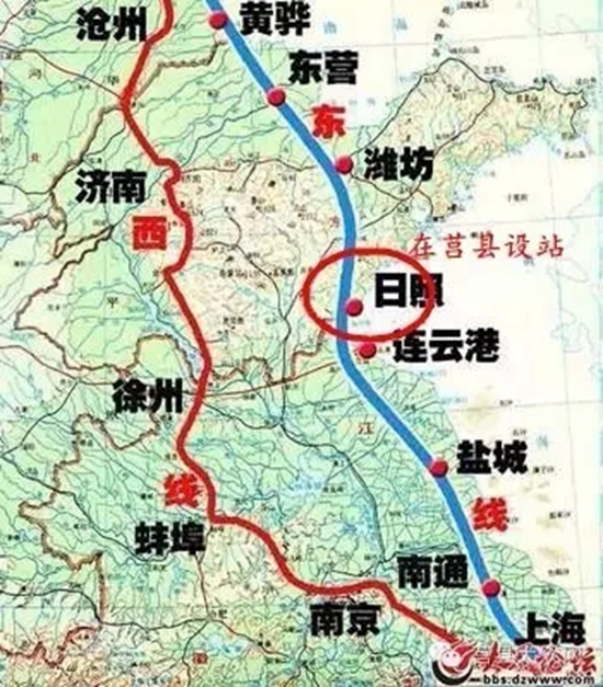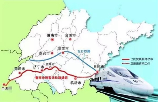 线路东起日照,途经临沂、曲阜、济宁、菏泽,西至河南兰考,鲁南高铁日照至曲阜段计划于2019年底建成通车。届时,市民经鲁南高铁、京沪高铁,可分别在2、3小时内通达济南、北京;向西与郑徐客专等连接,可通达郑州、西安、宝鸡、兰州、乌鲁木齐等城市。